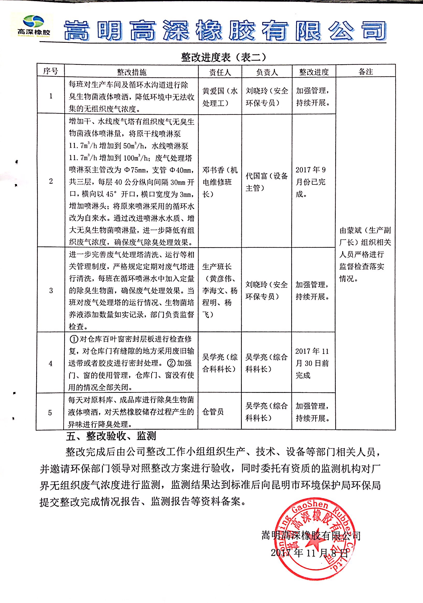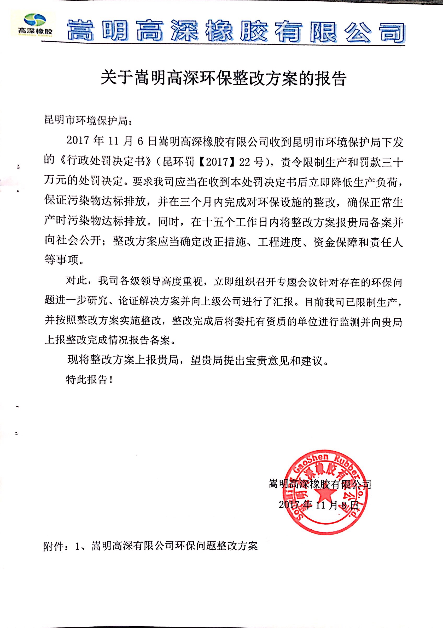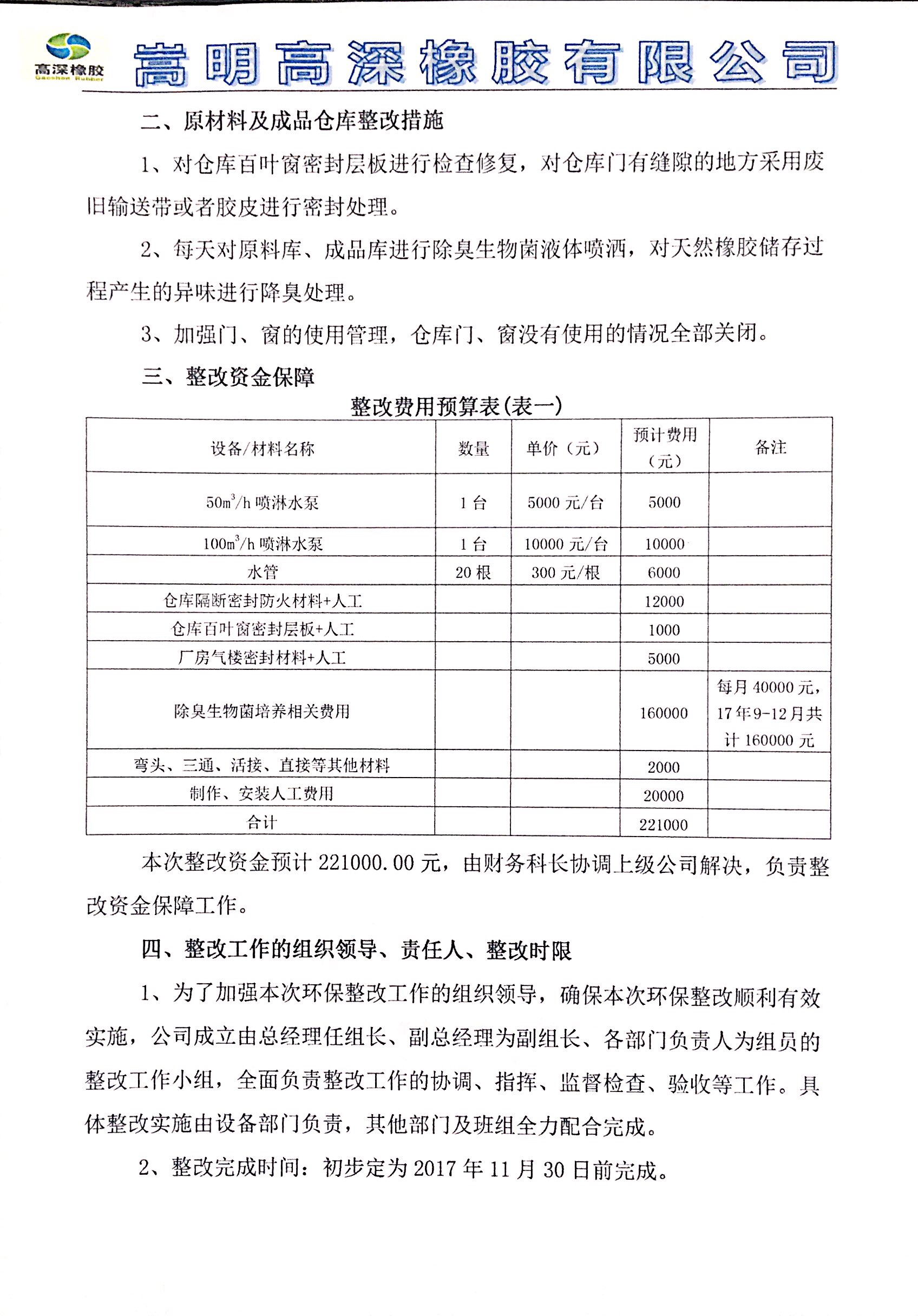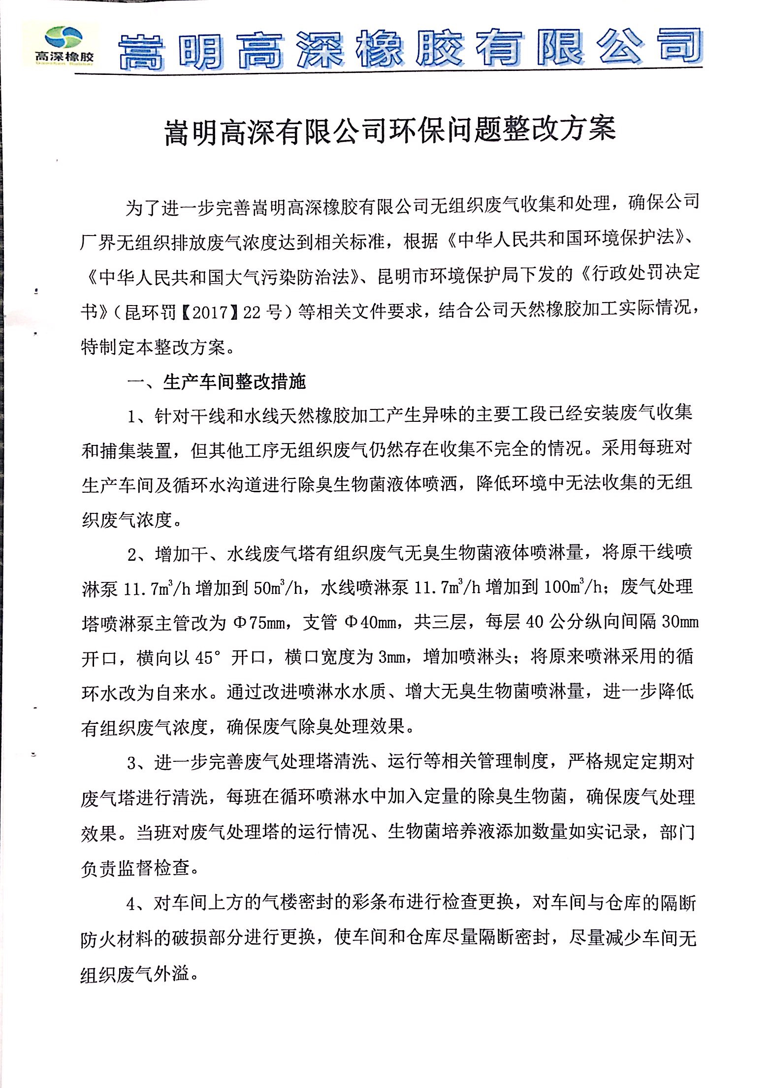 嵩明高深橡胶有限公司环保问题整改报告及方案 (1)
