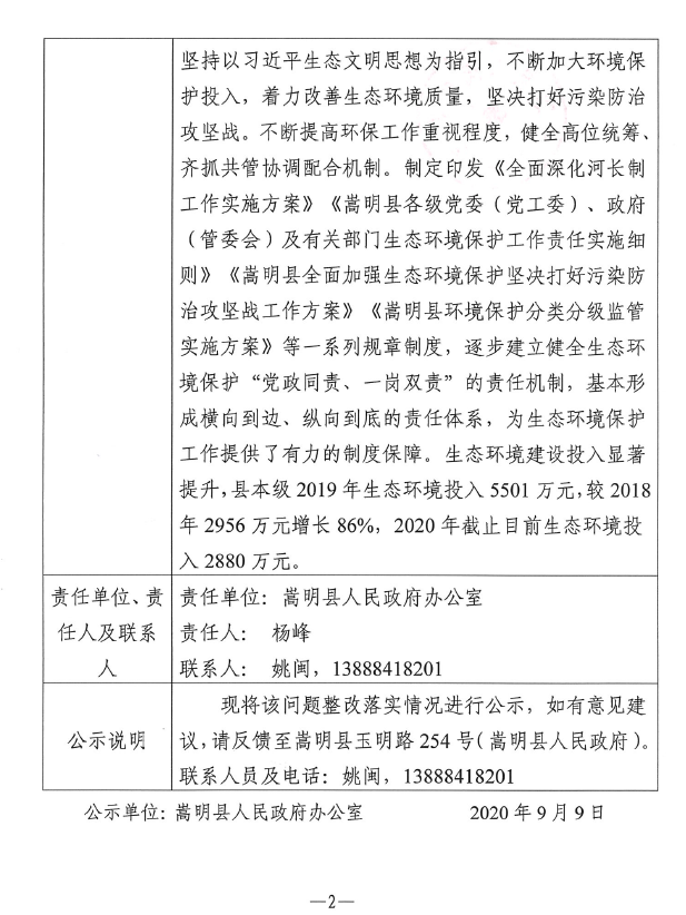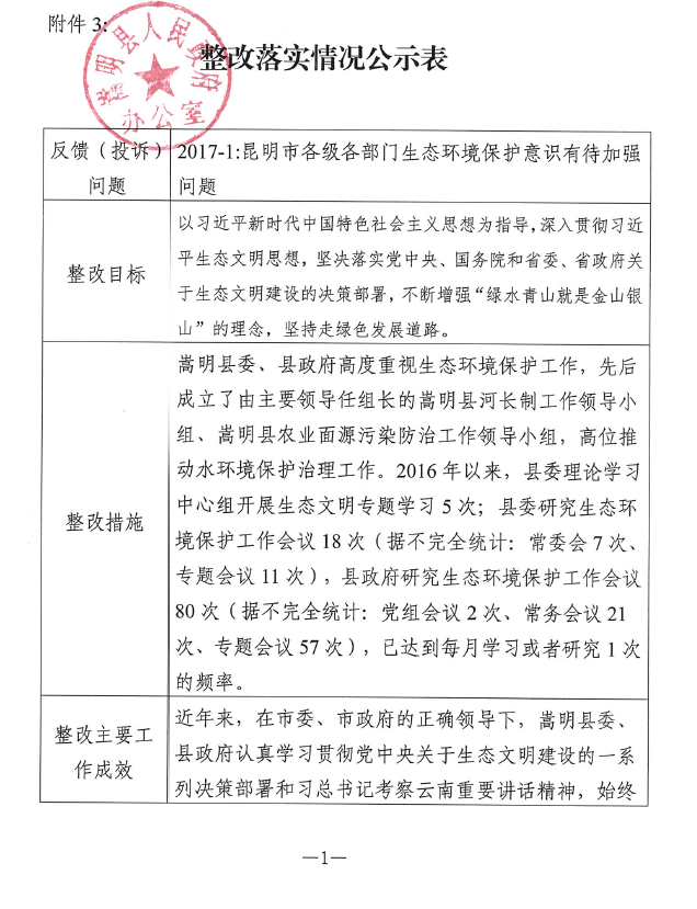 2017年云南省环保督察反馈问题整改落实情况公示表(2017-1)