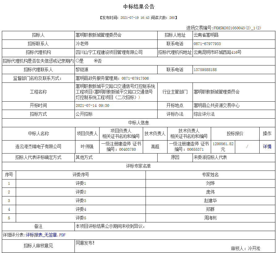 嵩明职教新城平交路口交通信号灯控制系统工程项目(二次招标)中标结果公示