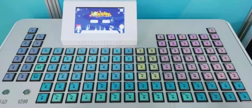 在嵩明科技馆里,有这样一件展品,它集学习和娱乐于一体,它可以听《化学生僻字》看MV,可以玩打地鼠游戏,可以记忆背诵化学元素周期表,它就是展项《元素周期之歌》。这件展品主要展示元素周期表的相关知识,包括直接演示和有趣的打地鼠游戏两种形式,可以让观众学习元素周期表之歌的同时,了解元素周期表的内涵和特点。