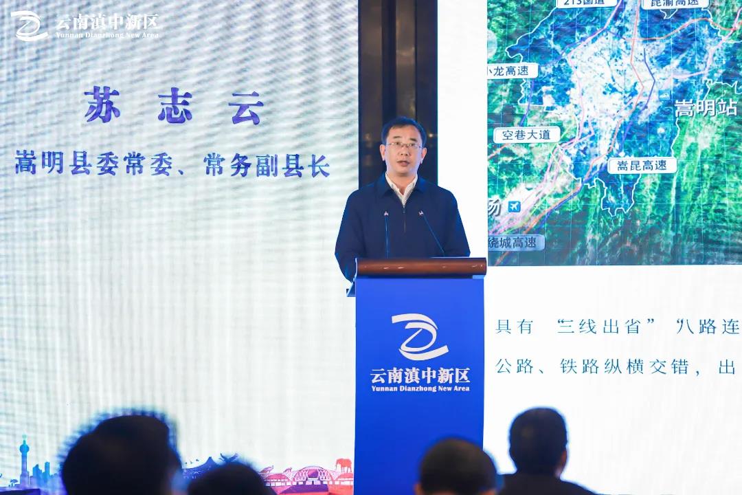 招商推介会上,苏志云常务副县长向出席会议各方介绍:嵩明县区位优越,联通各方,具有“三线出省”、“八路连昆”的立体交通联运优势,正逐步成为滇中核心交通枢纽;嵩明产业多元,设施完备,坚持“绿色”为最鲜明发展底色,围绕“新能源汽车”“绿色食品”“文旅康养”三大主导产业现已建成国家级杨林经济技术开发区、国家级现代农业示范区、省级嵩明职教新城,产业体系完整,发展势头迅猛;嵩明环境秀美,生态宜居,可登临古盟台,俯望千年时光,走进法界寺,聆听晨钟暮鼓,喝上一壶杨林肥酒,品位兰茂养生膳食、鲜花美宴;嵩明市场开放,活力无限,我们不断营造更好的营商环境,大力培育“办事不用求人,办成事不用找人”的营商文化和社会共识,以企业需求为导向,推动降低制度性交易成本,下硬功夫打造好发展软环境和产业服务示范环境,筑巢引凤,构建开放前沿下的“嵩明引力”。嵩明处处发生着创新创业的精彩故事,处处蕴藏着投资兴业的无限商机,在全方位对外开放、打造独特发展优势中砥砺前行,嵩明县真诚期待与各位企业家朋友携手奋进,共享发展机遇。