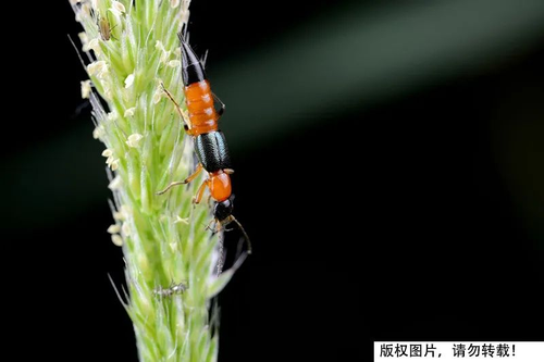 隐翅虫身体里能分泌pH值1-2的毒液,腐蚀性很强,被称为“飞行的硫酸”。如果它落在身上,正确的做法是轻轻吹走,或者用其它物品驱赶。