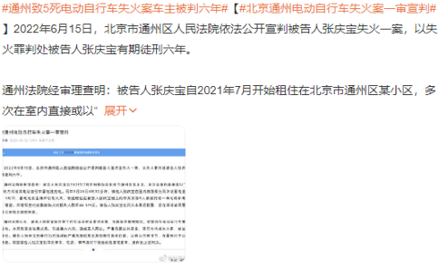 近日也有一条给电动车充电不当,导致火灾,当事人被判刑的新闻冲上热搜。