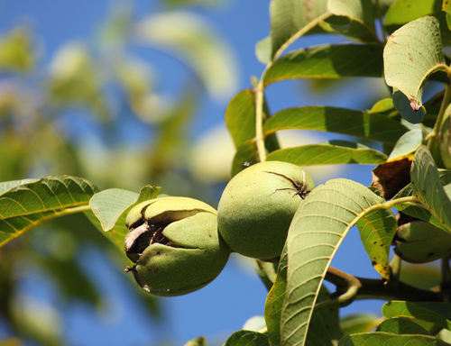 这绿色部分是核桃的外果皮,等到开裂,里面浅黄色的硬质内果皮才露出来。
