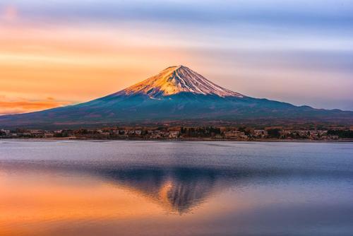 富士山高3776米,位于日本本州岛中南部,东距东京约80千米,是日本最高峰,也是一座活火山。