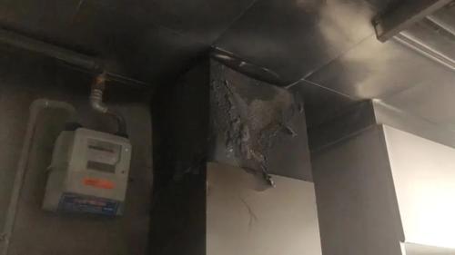 13时28分,太原新民北街一处门面房油烟机着火