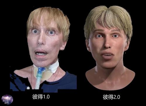 2020年,纪录片《彼得:人类赛博格(Peter:The Human Cyborg)》播出,影片里借由AI技术实现的彼得2.0虚拟图像,表情自然,声音饱含情绪,会大笑、微笑、眨眼,还会做出彼得生病前的招牌动作~兴奋时抬起右眉毛。