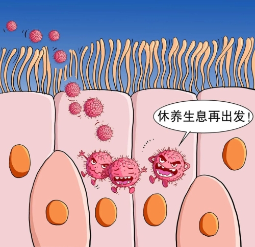 它们通常会先攻占呼吸道黏膜细胞,就地扎营2~3天,待队伍壮大后再进军血液,形成病毒血症。