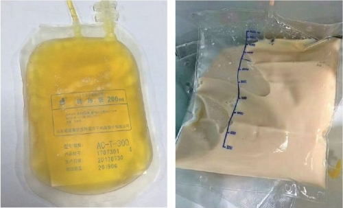 正常血浆(左)和高甘油三酯血症患者血浆(右)
