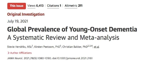 2021年,荷兰马斯特里赫特大学发表于《美国医学会杂志》子刊的一项研究指出,在30~64岁人群中,全球平均每10万人就有大约119人患青年发病型痴呆。根据亚组分析显示,男女性患病率相似。