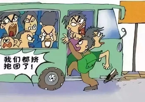 公交车到站时用手把门跟车跑动、拥挤