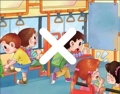 由于路面情况复杂,不要在车内随便走来走去,行进中的车辆随时都有急刹车的可能,车辆采取紧急制动时,中小学生来不及扶,极易摔伤、碰伤。