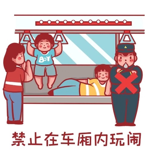在车厢内嬉戏打闹,来回跑动