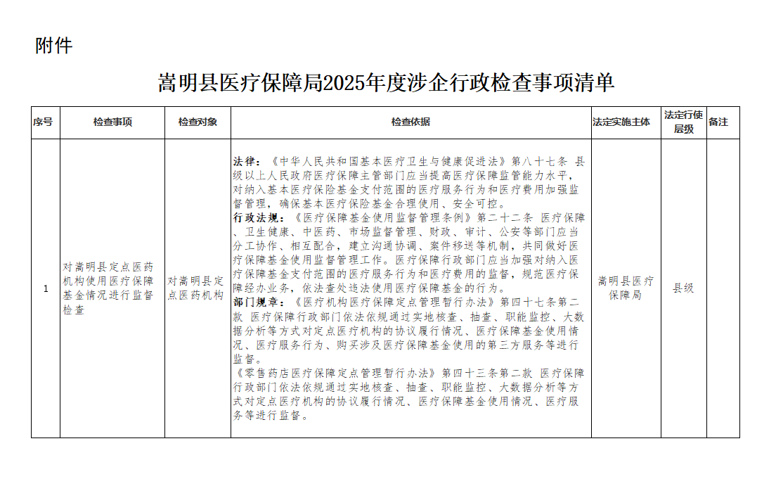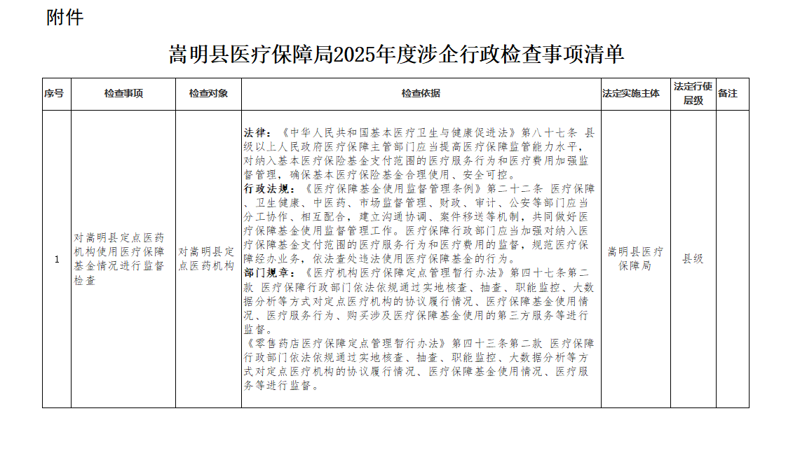 附件:嵩明县医疗保障局2025年度涉企行政检查事项清单