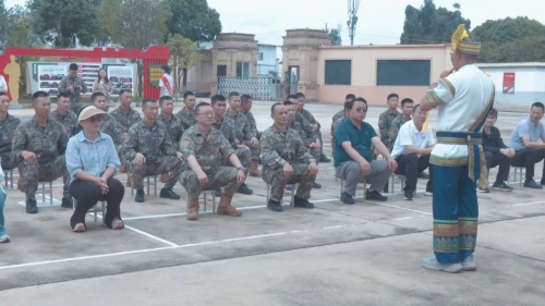 文化团队的精彩表演从葫芦丝独奏《木鼓神韵》拉开帷幕,深情的乐器声回荡在整个军营里,武术表演《男儿当自强》又把现场氛围推向高潮,官兵们看得津津有味,现场掌声、喝彩声此起彼伏。最后,原创歌曲《生命至上》精彩演唱,用歌声再现先辈的英勇事迹,引发官兵强烈共鸣。除文艺表演外,非遗传承人也将面塑带到现场,为军营增添了浓厚的文化气息。