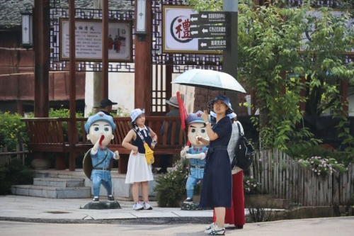 “这个竹篾上墙好有创意,来这儿游玩太有意思了。”来自重庆的旅居者一边拍照一边端详着绘画作品说道。
