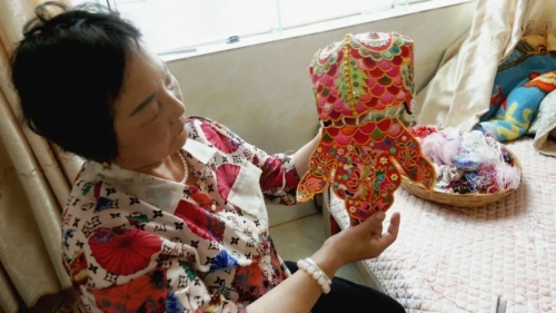 在嵩阳街道寺脚社区龙福村,有这样一位传统“守”艺人,她将母亲教给的手艺坚持了五十年,又把这项手艺教给女儿,把大鱼帽这项非遗刺绣传承了一代又一代。
