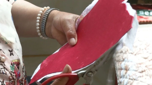 李竹英是寺脚社区的一名普通居民,打小就对民间手工技艺感兴趣的她,正好有一位擅长刺绣的母亲。她告诉记者,从15岁开始,就跟着母亲学习刺绣手工品制作,到现在65岁,已坚持了50年。在她有了两个女儿之后,又将从母亲那学到的手艺,传给了女儿。