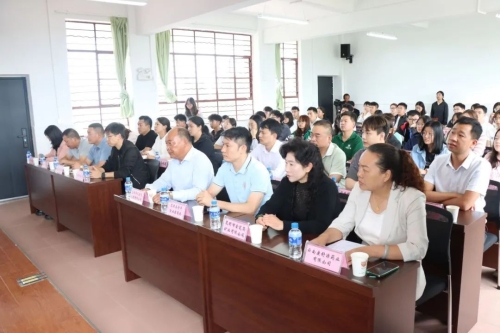 县领导桂志芬、张军、杨伦参加仪式,并向嵩明县青年企业家商会、嵩明华天建筑工程有限公司、云南康舒源药业有限公司等8个捐资助学爱心企业授予牌匾,爱心企业为学生代表发放助学金和奖学金。
