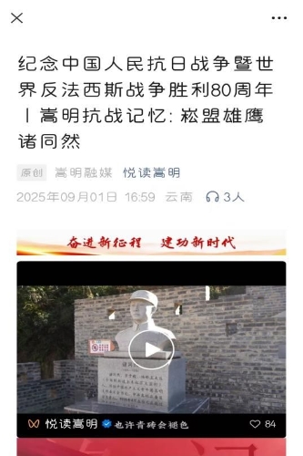 县退役军人事务局举办“铭记历史,吾辈自强”主题朗诵和观影活动;团县委组织136名新兴领域青年集中观看《南京照相馆》;县委老干局开展银发宣讲、文艺展演、书画展览及现场教学。多项活动共同缅怀历史、致敬英雄,弘扬红色基因;杨林镇嘉丽泽社区党总支联合滇池学院人文学院团总支,共同开展了以“抗战精神薪火传,青春志愿暖桑榆”为主题的志愿服务活动。