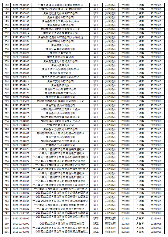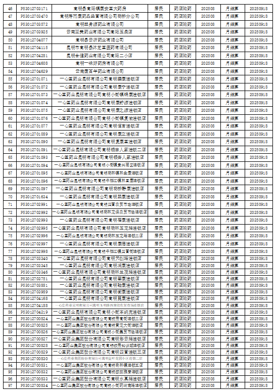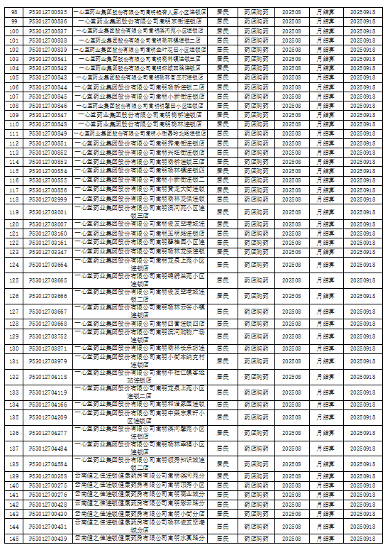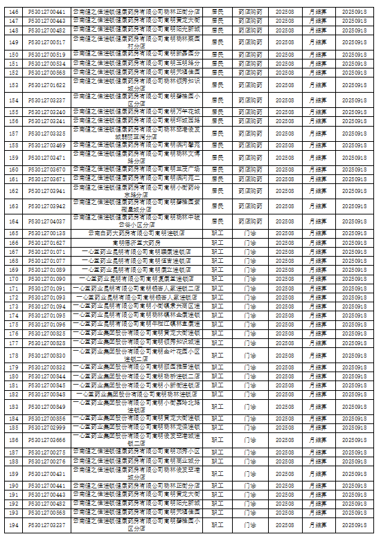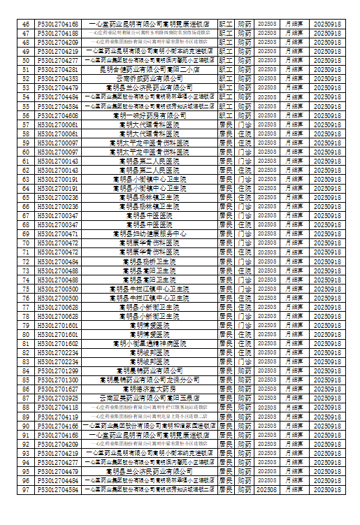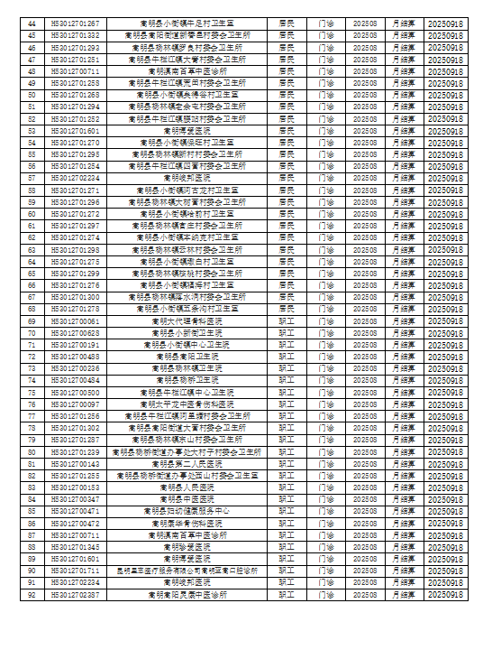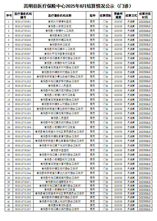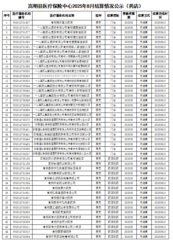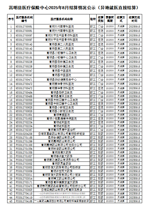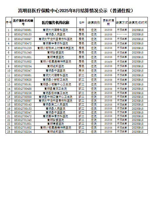 根据相关工作要求,现将2025年8月嵩明县定点医药机构费用结算情况公示如下: