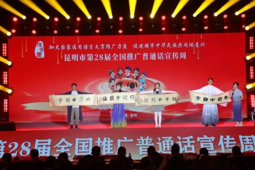 9月26日,昆明市第28届推广普通话宣传周启动仪式在嵩明举行。推普周以“加大国家通用语言文字推广力度,促进铸牢中华民族共同体意识”为核心主题,以语言为桥、以文化为魂,推动推普工作走深走实,营造“写规范字、讲普通话”的良好社会氛围。