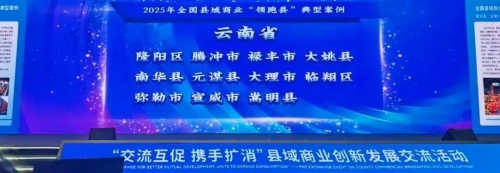 近日,商务部在浙江省杭州市举行“交流互促 携手扩消”县域商业创新发展交流活动,会上公布了2025年全国县域商业“领跑县”案例集,嵩明县申报的《嵩明县“商圈引领+物流赋能”双轮驱动推动县域商业高质量发展》成功上榜!