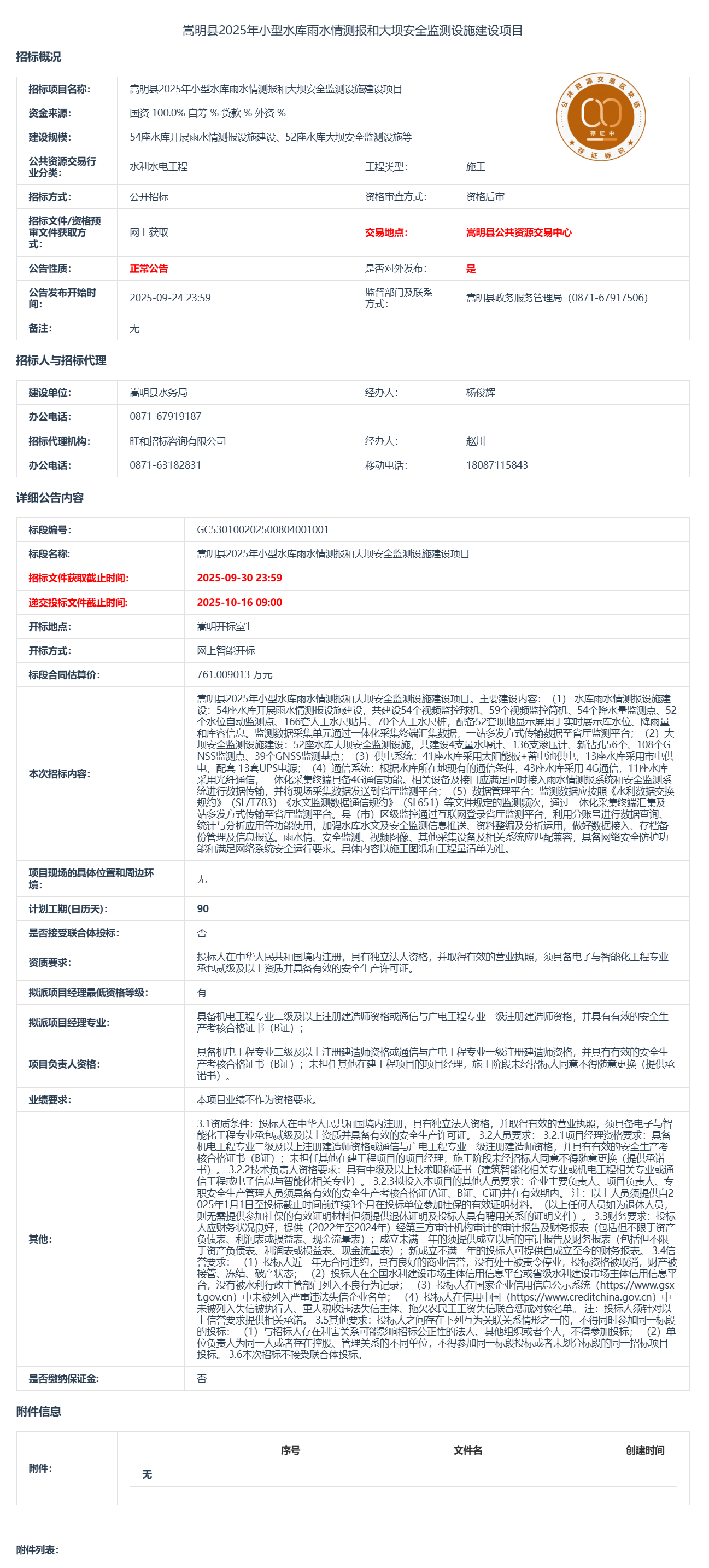 嵩明县2025年小型水库雨水情测报和大坝安全监测设施建设项目(招标公告)