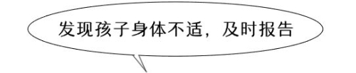发现异常(例如:口腔有溃疡、皮肤有皮疹或者手、足有水泡、发热、腹泻等症状)及时与班级教师联系。
