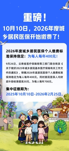 10月10日起,2026年度城乡居民医保开始缴费了!