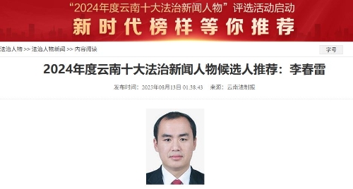 “2024年度云南十大法治新闻人物”候选人推荐:李春雷