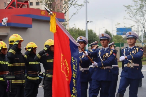 杨林经开区党工委副书记、管委会副主任李建参加,县委常委、副县长杨磊主持仪式。仪式上,全体人员肃立,奏唱中华人民共和国国歌,并迎送中国消防救援队队旗。仪式后,大家实地参观了车辆装备器材及营房库室建设情况。