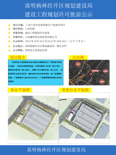 云南鑫得发包装科技有限公司工业产品外包装智能生产线建设项目建设工程规划许可变更批前公示