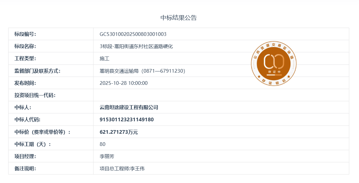 注:以上公示内容转自”云南省公共资源交易信息网“