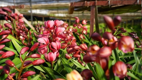 “针对消费者近年来偏爱小巧精致盆栽的趋势,我们用花期更长、色彩更喜庆的杂交兰替代了以往体型较大的大花蕙兰。”美山花卉办公室主任车丽蓉表示,这一调整收效显著,杂交兰因其花期长、花色喜庆,尤其是红色系杂交兰,已成为众多家庭采购的首选。而澳洲香水石斛兰凭借自带的淡雅香气,更受年轻消费者青睐,多用于书房、阳台装饰,省外订单占比达60%。梦香兰则以“开花量大、养护简单”的优势,成为花店批量采购的热门,单批订单量常超千盆。为保证品质,美山花卉严格执行“叶片无斑、根系健壮、花苞饱满”三项筛选标准,不合格产品直接剔除,确保送到消费者手中的都是精品。