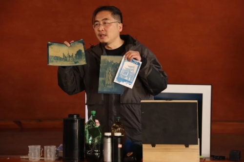 活动伊始,纪一兵以摄影史漫谈拉开序幕。他结合自身师从北京电影学院多位老师的求学经历、突破彩色相纸直接拍摄技术的研究历程,系统梳理了摄影术诞生与发展的脉络,深入解析了古典摄影工艺背后的物理与化学原理。从早期摄影术的探索到银盐摄影的兴盛,从大画幅相机的特性到彩色相纸直接拍摄技术的创新,他用生动的案例和专业的解读,让在场者对传统摄影的匠心与魅力有了全新认知。