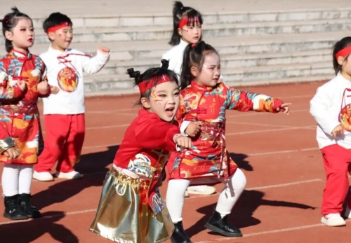 师幼共同演绎的开场节目《鼓震龙威象韵山河》瞬间点燃全场氛围,幼儿节目《篮球宝贝》则生动展示了幼儿园特色课程的丰硕成果。数百名幼儿在草坪上齐跳团体操,童真活力感染着在场每一个人。“我们的表演有舞龙,我还会乒乓球操、搏击操。”表演幼儿胡柠兴奋地分享道。幼儿陈安也开心说:“我喜欢舞龙,还可以参加舞龙比赛。”