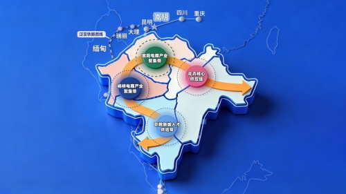 电商产业与空间布局的深度融合,通过“电商走廊”联通四海、辐射八方。分两步走:第一步,打造具有发展优势的嵩明“电商走廊”,按照“一带多点”的思路,串联嵩明职教新城人才供给端、杨桥街道花卉电商聚集区、嵩阳街道电商总部聚集区、农业园区电商供应链聚集区,形成电商产业示范带,带动杨林镇、小街镇、牛栏江镇、杨林经开区依托特色产业推进电商赋能。第二步,突破嵩明地域限制,在“电商走廊”基础上,发挥好“铁公机”齐备的交通网络优势,依托昆明副城的定位,和连接成渝双城经济圈、中老铁路、泛亚西线等区位条件,优先发展电商贸易,努力做到买全国、卖全国,买全球、卖全球,着力培育建设区域电商产业中心,形成经济增长新动能。