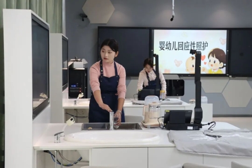 在昆明幼儿师范高等专科学校早期教育学院的实训楼里,学生们在“三胎家庭的温馨秘诀”“乡村早教”等课题中探索,在AI辅助下严谨练习婴幼儿照护全流程。背起娃娃用京剧加持演示急救技能、身着专业服装开展实操、通过虚拟仿真设备模拟托育环节……在功能齐全的实训环境中,他们沉浸式锤炼着“幼有所育”的真本领,这些场景真实发生,温暖而专业。