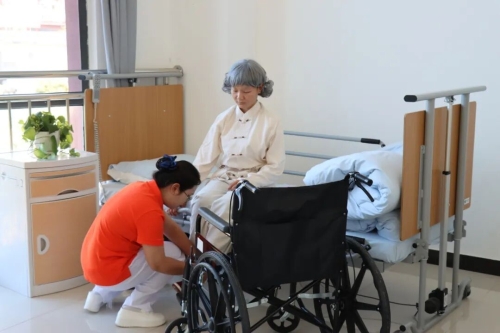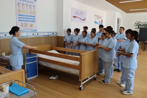 与此同时,实训楼二楼的教室里,智慧康养学院的学生们正在教师的指导下,为模拟老人进行专业护理。借助实景化教学与理论结合,学生们很快就掌握了动作要领。而在智慧康养学院,学生们跟着教师练习“八段锦”养生功法,或扮成老年人模样,进行实操演练;阳光充足的养护病房、身体康健疗养室等一应俱全。