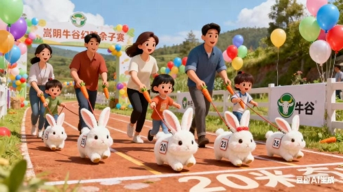 任务描述:成为可爱的“召唤师”!付费20元获得喂食礼包,可亲近小兔并任选一只编号比赛。比赛以家庭为单位,5组一局。在20米奇幻赛道上,用胡萝卜引导你的“绒绒兔”伙伴冲向终点(严禁触碰!)。