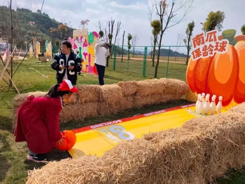 6. 滚击术:南瓜保龄球 - 用仿真南瓜,在4米球道上用两次机会击倒所有“烦恼”瓶。