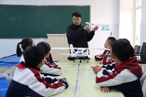 在这里,科技教育已成为一张闪亮的名片。曾是中国民航局教员、无人机系统工程师的段超然老师是学校的“重点保护对象”,因为正是他,带领着小朋友们勇闯各种科技比赛。在他的“专属办公室“里陈列着各种奖杯,还有每个阶段孩子们的航模飞机作品、小火箭等,一旁的3D成型打印机正在嗡嗡作响,打印着元旦活动需要的“小玩意”。航模课上,几位同学也饶有兴致地听段老师讲解模型飞机背后的原理,参加过比赛的同学还为其他同学演示并讲解了操作杆的基本功能和技巧。
