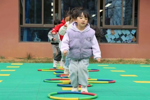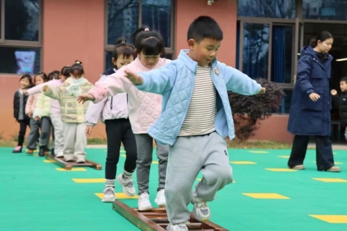 12月24日,走进嵩阳街道中心幼儿园碧桂园园区,9个班的幼儿正分别在老师的带领下开展户外锻炼活动和区域活动,跨障碍、走平衡木、滚铁环……孩子们游戏正酣,园内四处洋溢着欢声笑语。