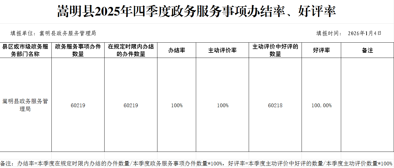 嵩明县2025年四季度政务服务事项办结率、好评率