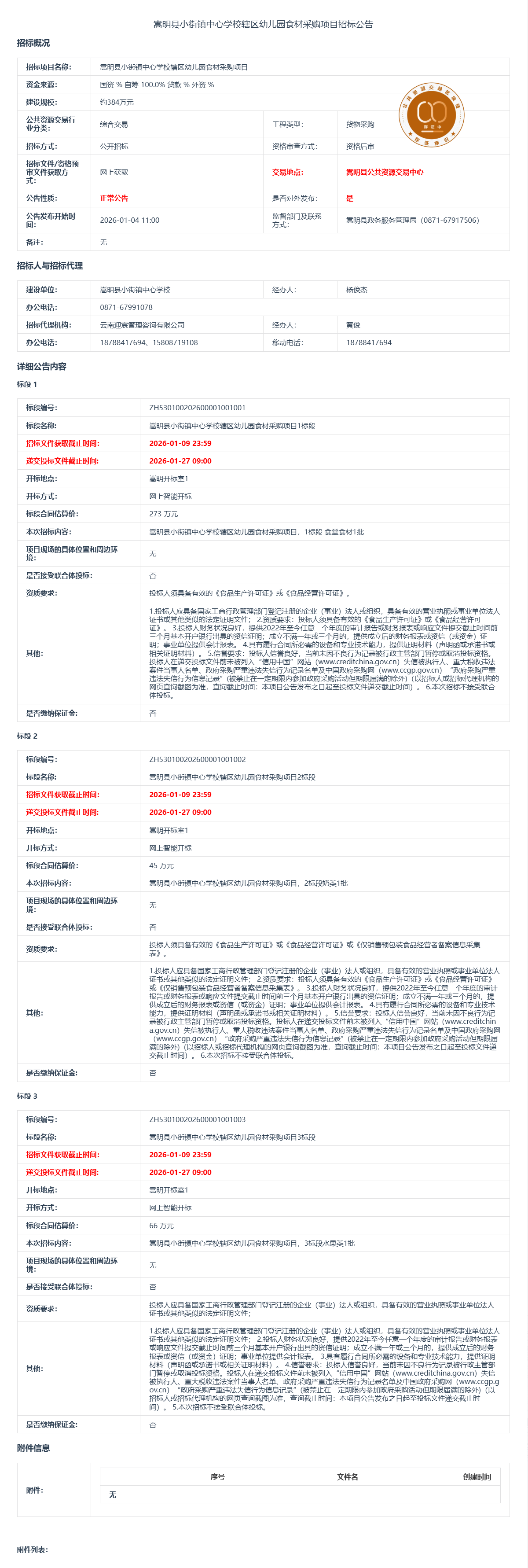 嵩明县小街镇中心学校辖区幼儿园食材采购项目(招标公告)