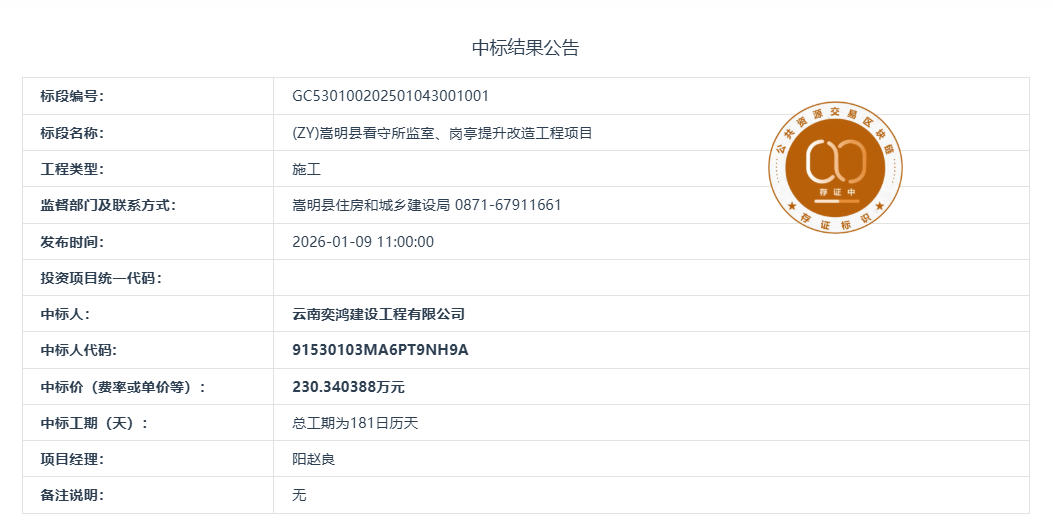 (ZY)嵩明县看守所监室、岗亭提升改造工程项目(中标结果公示)