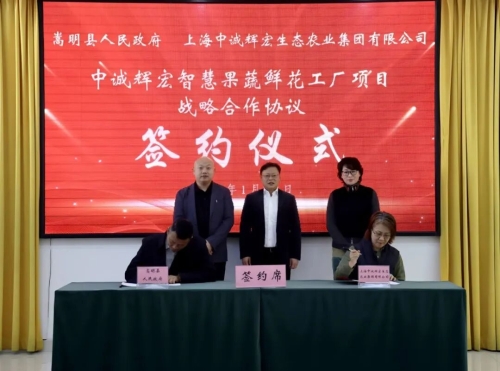 1月20日,嵩明县与上海中诚辉宏生态农业集团有限公司、瑞雪荷盈(上海)农业发展有限公司签订中诚辉宏智慧果蔬鲜花工厂项目战略合作协议、嵩明中荷数字农业科创园项目战略合作协议,标志着嵩明县在引入重大农业产业项目、推动农业现代化转型升级方面迈出坚实的一步,助力推动县域现代农业转型升级和乡村振兴。