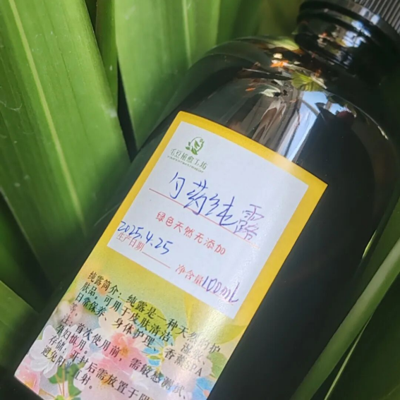 晨光微露时,她常提一竹篮,漫步于自家小院或郊外山野,采摘带着晨露的玫瑰、茉莉与洋甘菊。这些鲜活的草木,是她制作天然鲜花纯露的灵感之源。从择洗、蒸馏到冷凝、装瓶,每一步皆耐心细致,不疾不徐。当澄澈的纯露在玻璃瓶中轻漾,一缕淡淡花香便悄然弥漫,仿佛将整个春天的清新与生机都珍藏其间。