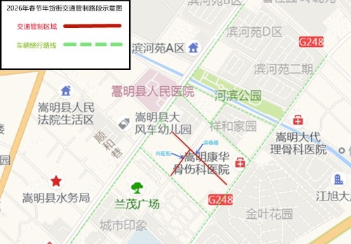 为营造浓厚的春节氛围,规范年货经营秩序,方便群众采购年货,切实惠及广大经营户,嵩明县综合行政执法局、嵩阳街道办事处将在兴旺街与迎春路设立2026年春节年货街,并免费提供摊位。为做好年货街周边道路交通保障服务工作,确保道路通行顺畅,根据《中华人民共和国道路交通安全法》相关规定,决定对年货街周边相关路段实施交通管制,禁止机动车通行,现将有关事项通告如下: